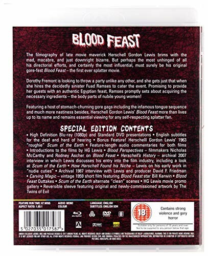 - Double-Disc Format: Includes both Blood Feast and Scum of the Earth, providing hours of horror entertainment.