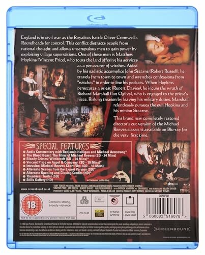 In summary, Witchfinder General offers a captivating blend of historical narrative and horror, making it a must-have for fans of the genre. While it may have limited special features compared to modern releases, the film's stunning visuals, haunting atmosphere, and the iconic performance by Vincent Price make it stand out.