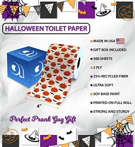Whether you're looking to surprise your friends with a funny prank or just want to add some quirky charm to your Halloween decorations, the Halloween Pumpkin and Bat Printed Toilet Paper is a must-have item for the spooky season!